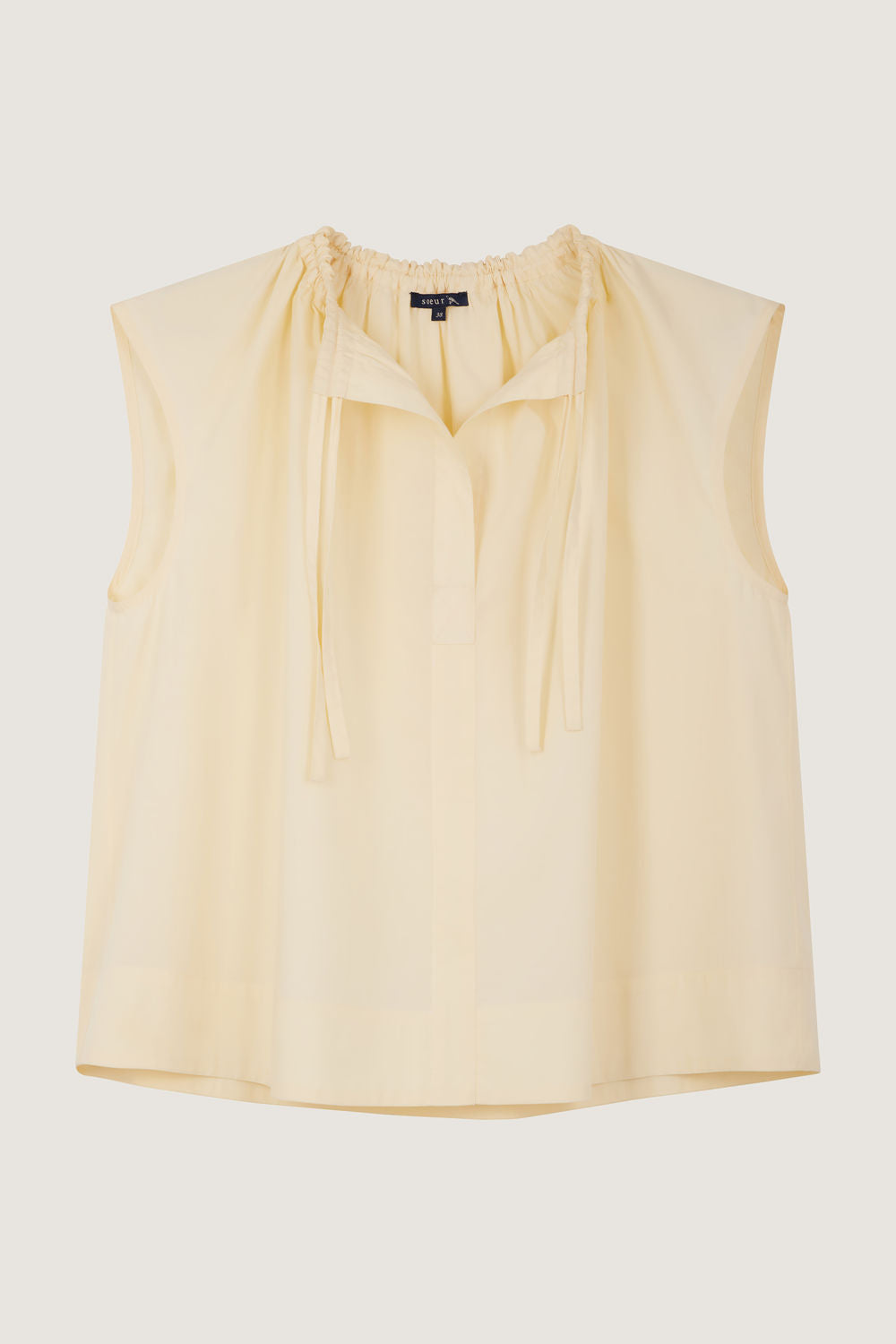 - Escote fruncido y despejado ajustable mediante dos cordones de ajuste
