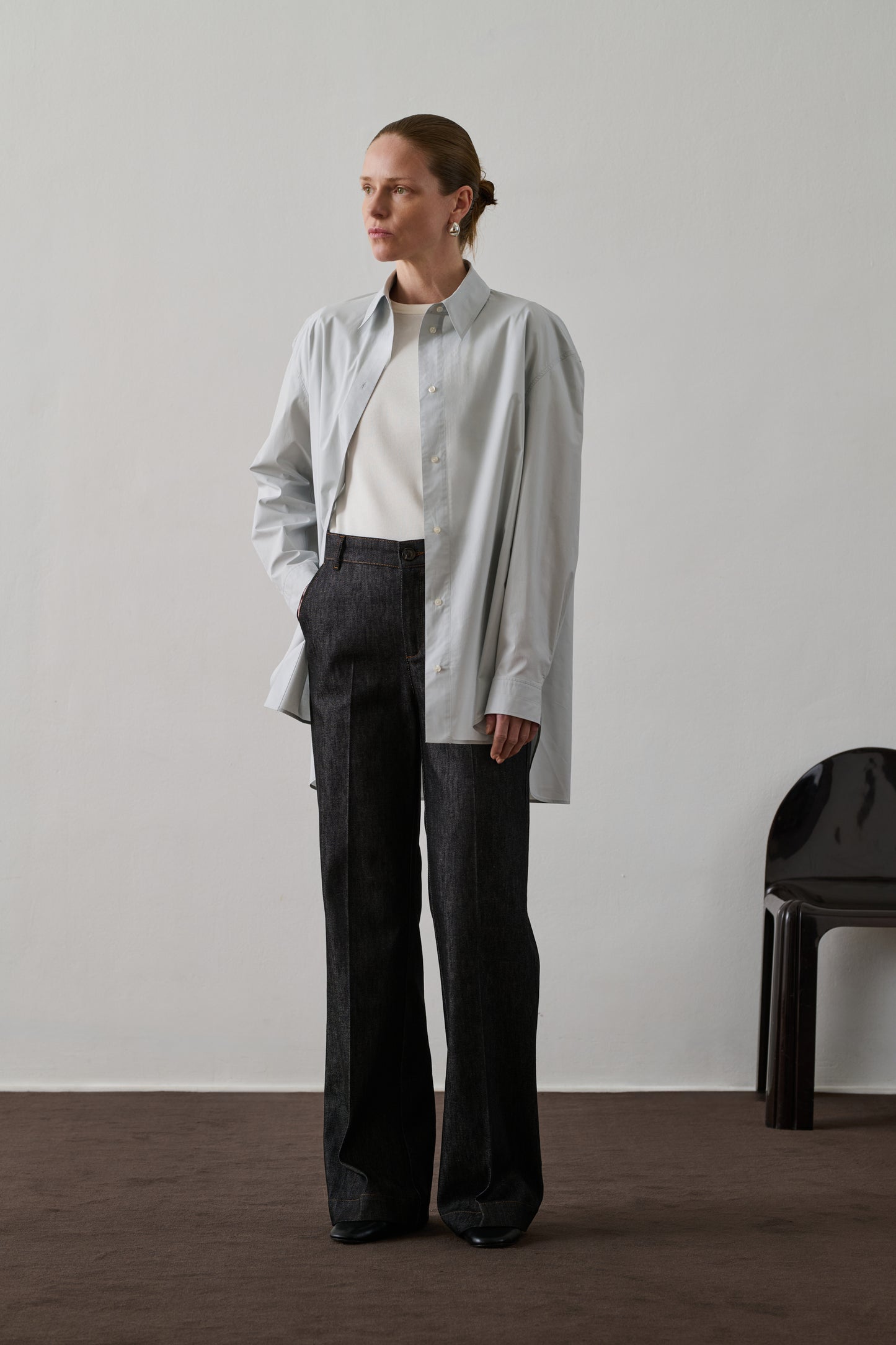 CALIFORNIA es un vaquero atemporal del guardarropa de Sœur, con un corte amplio y acampanado. Su cintura es alta, perfeccionando una apariencia femenina y esbelta.