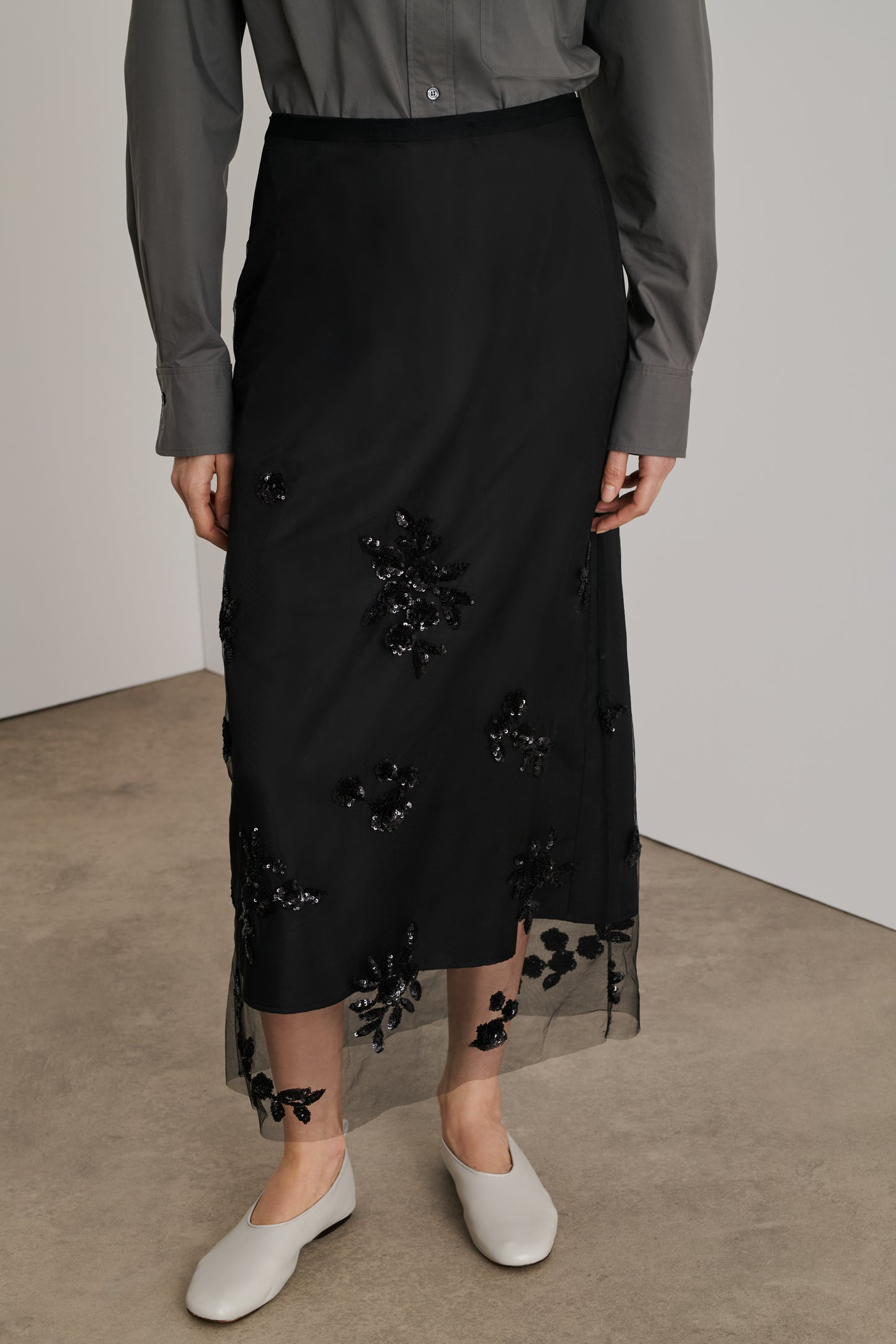 Falda larga negra con tul y bordados