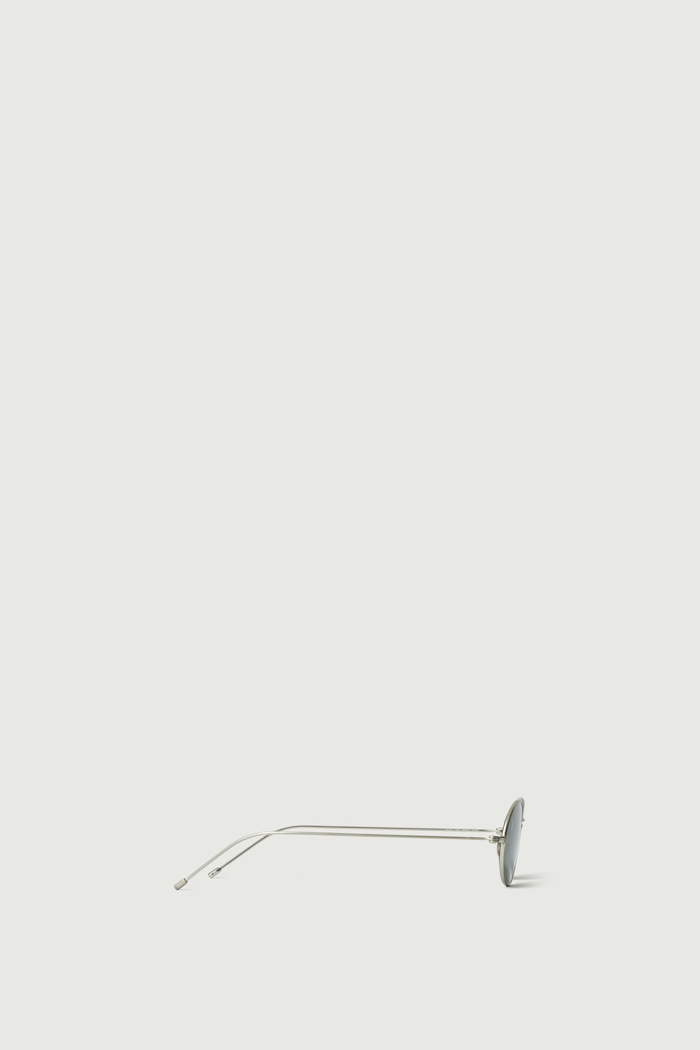 AMBER es un par de gafas de sol metálicas con una silueta ovalada inspirada en los años 2000. Su montura fina y minimalista enmarca unos cristales tintados oscuros para un look gráfico y decidido.