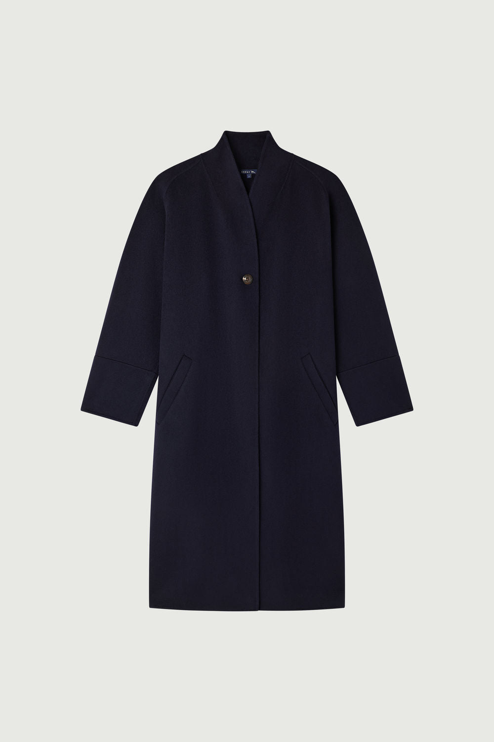 Abrigo de doble faz en lana y cachemira azul marino oscuro