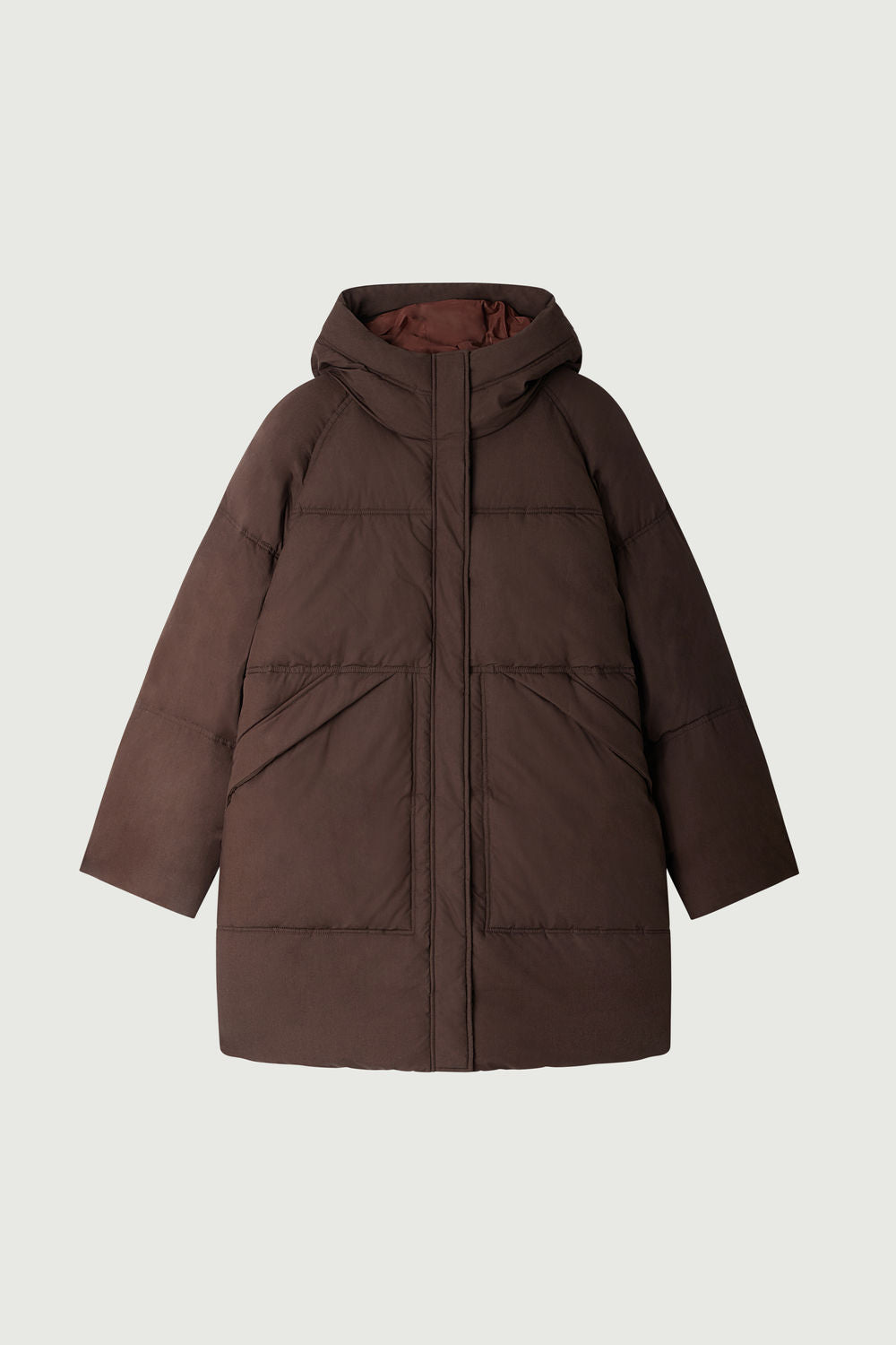 abrigo storm Chaqueta acolchada marrón oversize con capucha