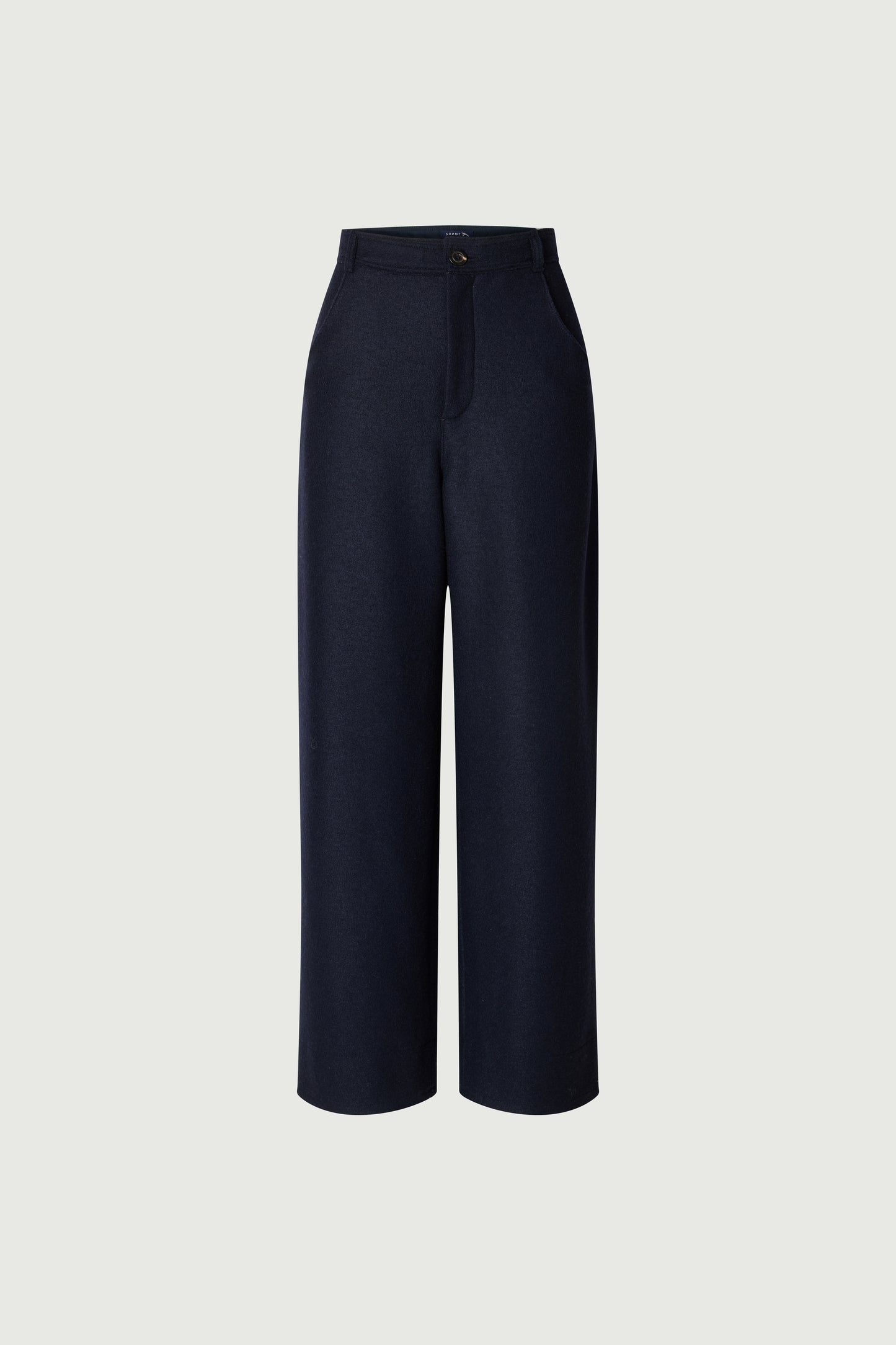 BAYONNE es un pantalón de lana hervida con un espíritu minimalista, con bordes sin rematar y crudos, sin costura. Se distingue por su pierna redondeada y su caída, y su cintura sin pinzas que se adapta a todas las morfologías.