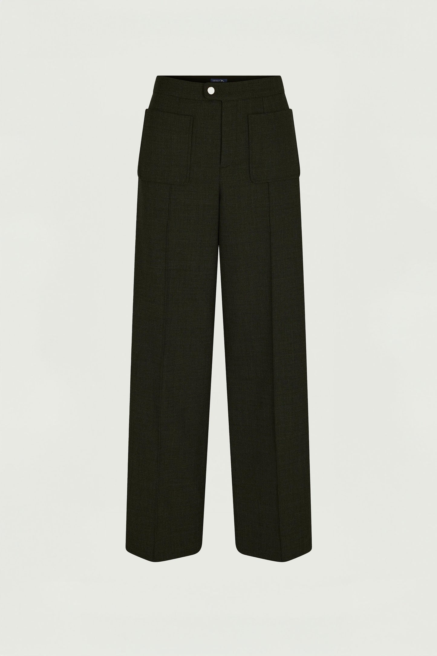 HARRY es un pantalón imprescindible del vestuario Soeur, reconocible por sus bolsillos de parche tanto en la parte delantera como en la trasera y su pliegue quebrado a lo largo de la pierna. Su tela de lana suave y cómoda proporciona sostén al mismo tiempo que es transpirable.
