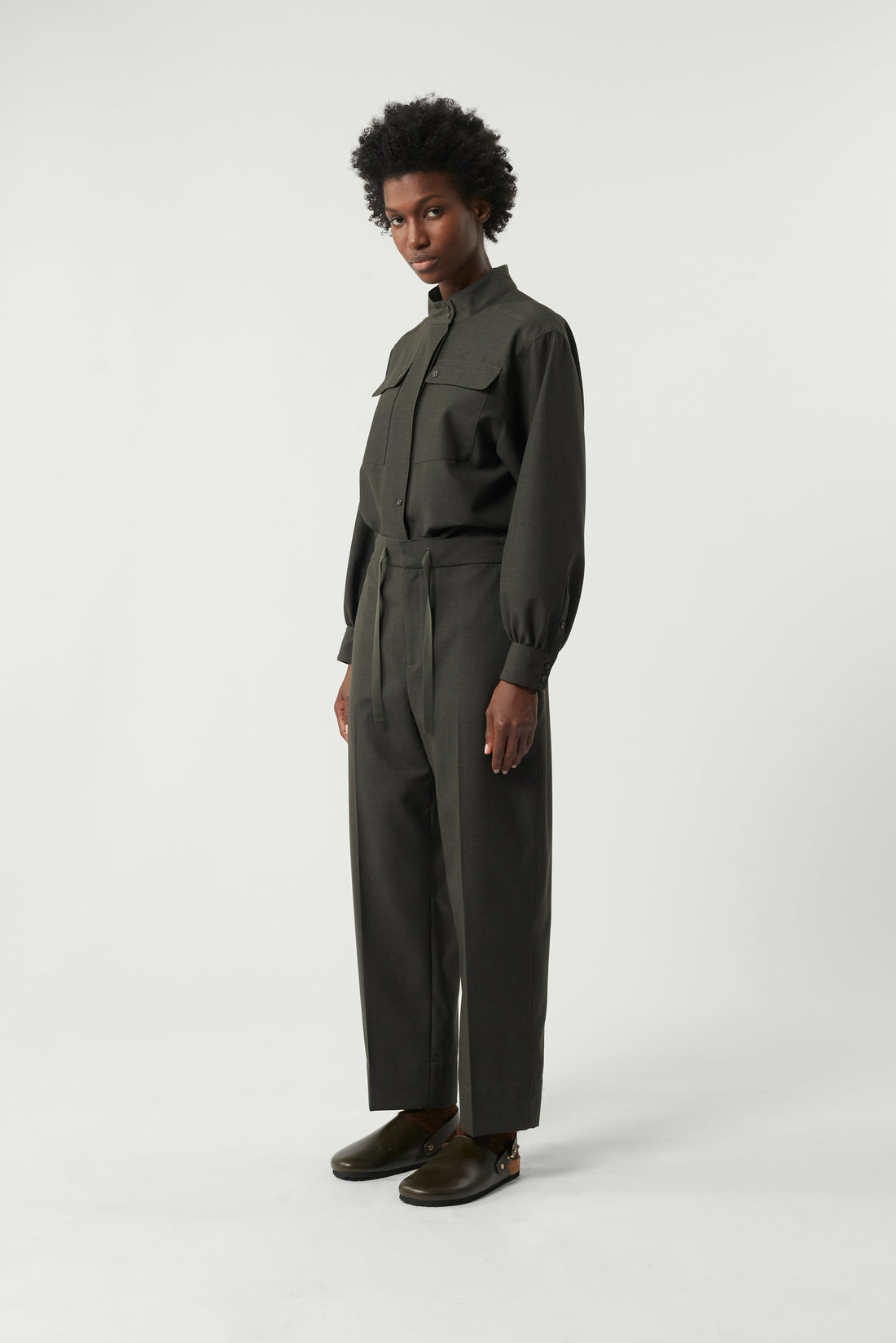 pantalã“n sarajevo Pantalones de lana jaspeada caqui