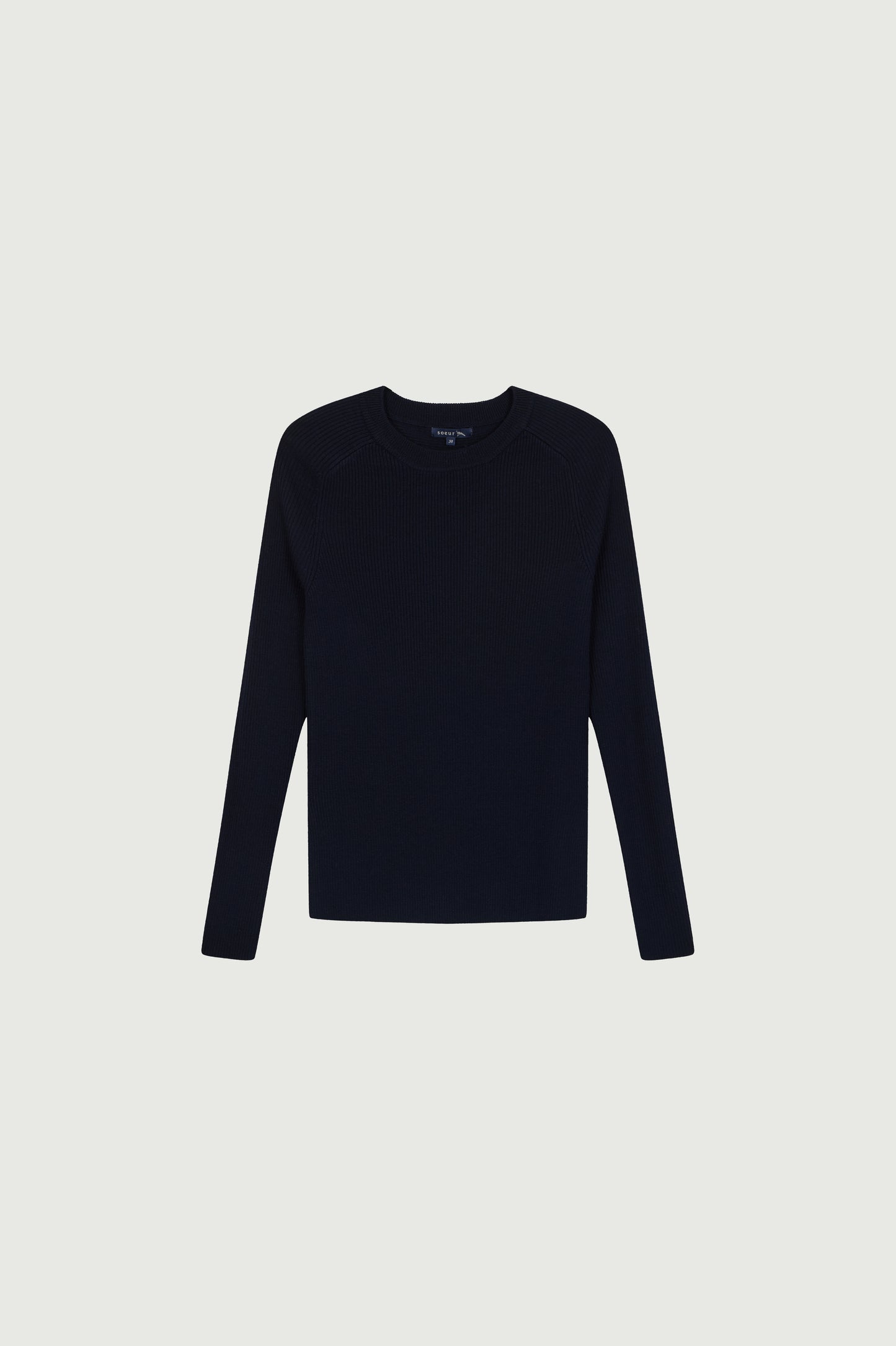 Nuestra lana de merino se teje con hilos italianos. Ofrece aislamiento térmico (proporciona calor) y no pica. Además, es antiestática y mantiene su forma sin arrugarse. Aquí, el tejido es fino y acanalado, lo que hace que la malla sea extensible y cómoda.