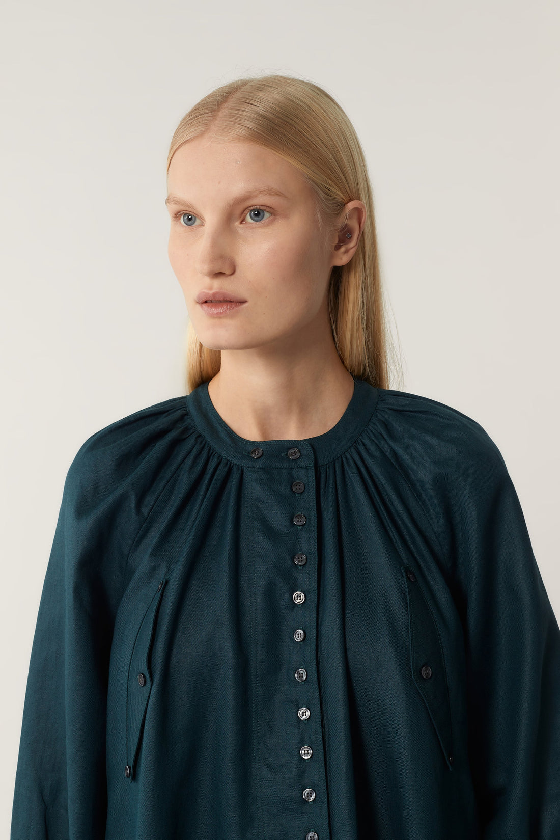 - Parte inferior de la manga fruncida con pequeño puño abotonado