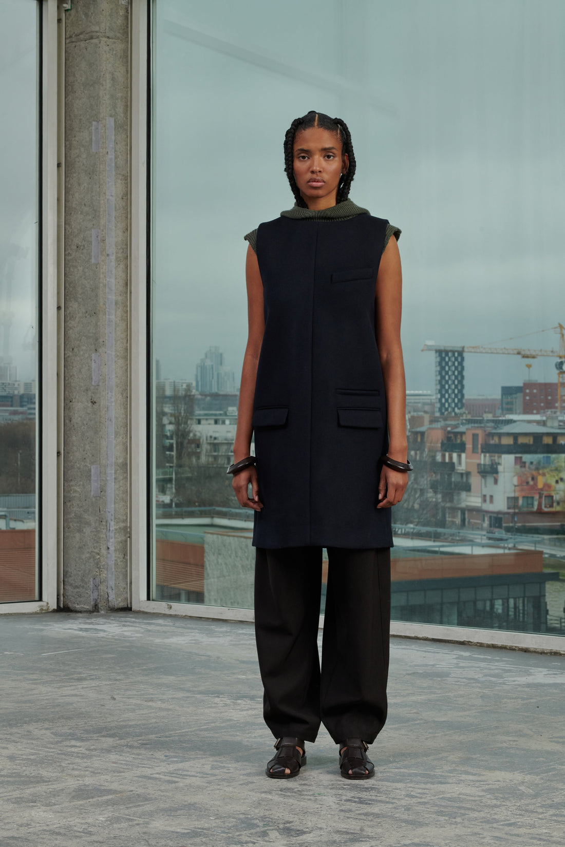 Vestido corto de paño de lana - Corte trapecio- Escote redondo- Pinzas delante- Abertura con cremallera oculta en la parte trasera