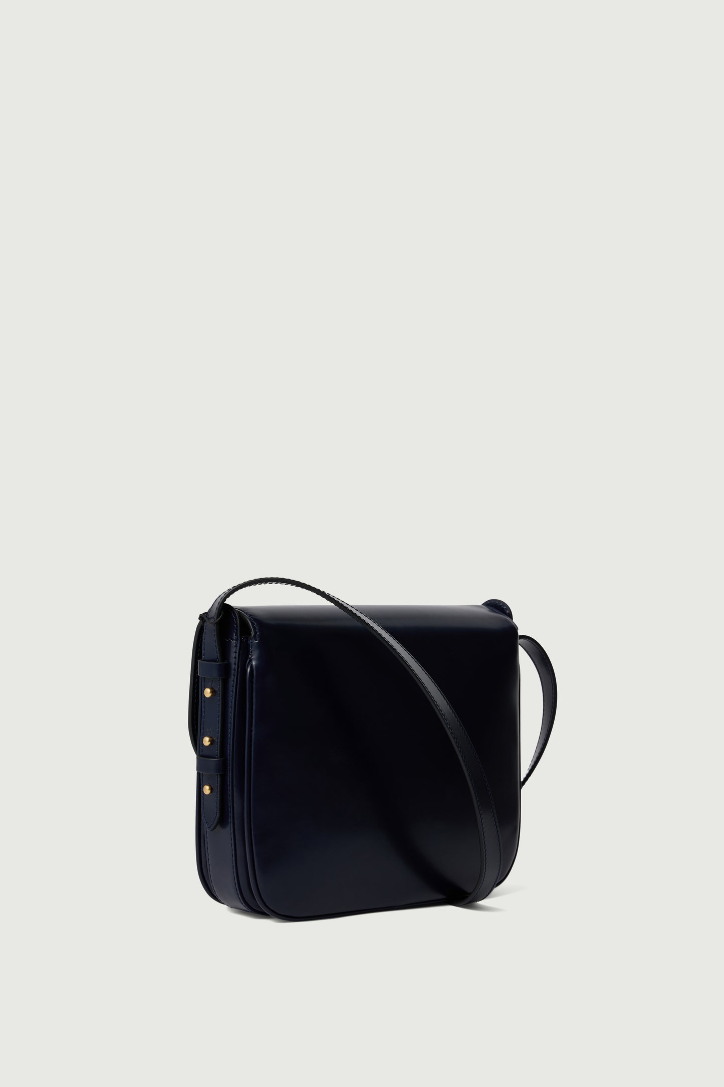 - Gran solapa frontal con cierre con monograma «S» dorado