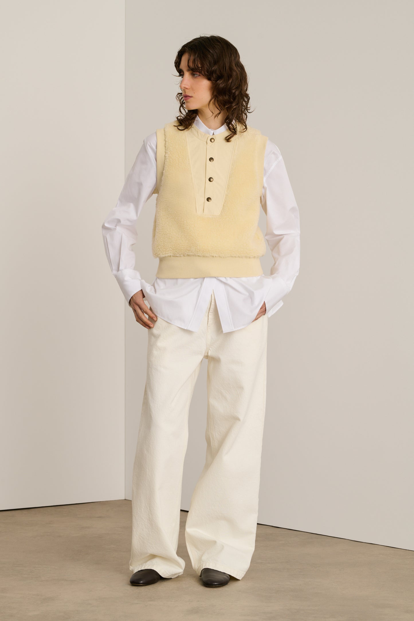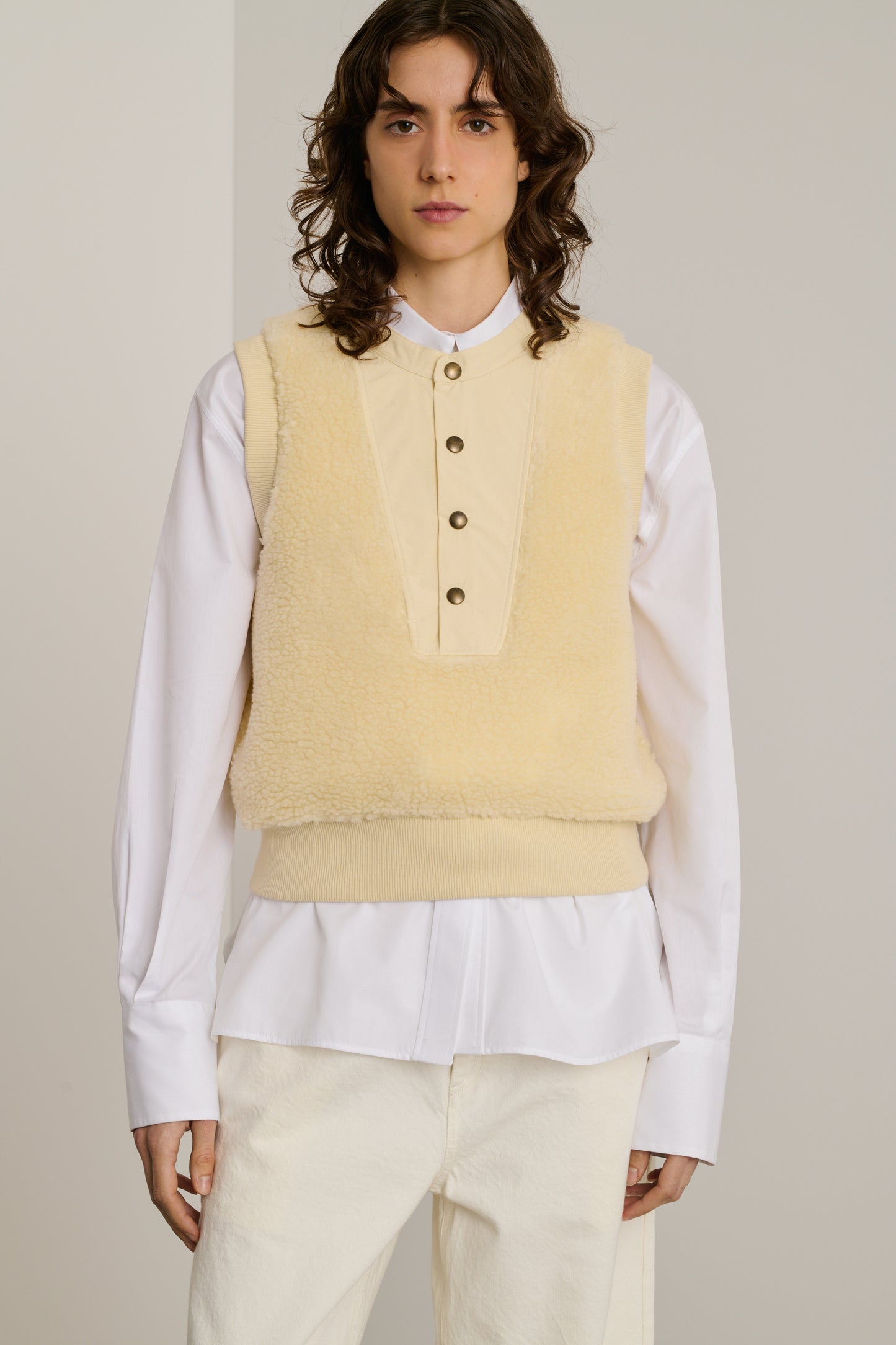 BAILA es una sudadera sin mangas de piel sintética. Su corte recto, sutilmente ajustado en la parte inferior del cuerpo, dibuja una silueta elegante al tiempo que ofrece libertad de movimiento. Ideal para superponer o llevar solo, esta sudadera combina calor y estilo.